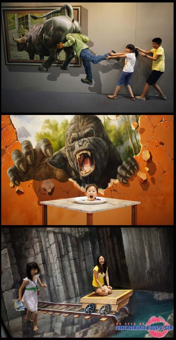 The 3D optical illusion painting exhibition held at Hongzhou, Zheijiang Province of China.